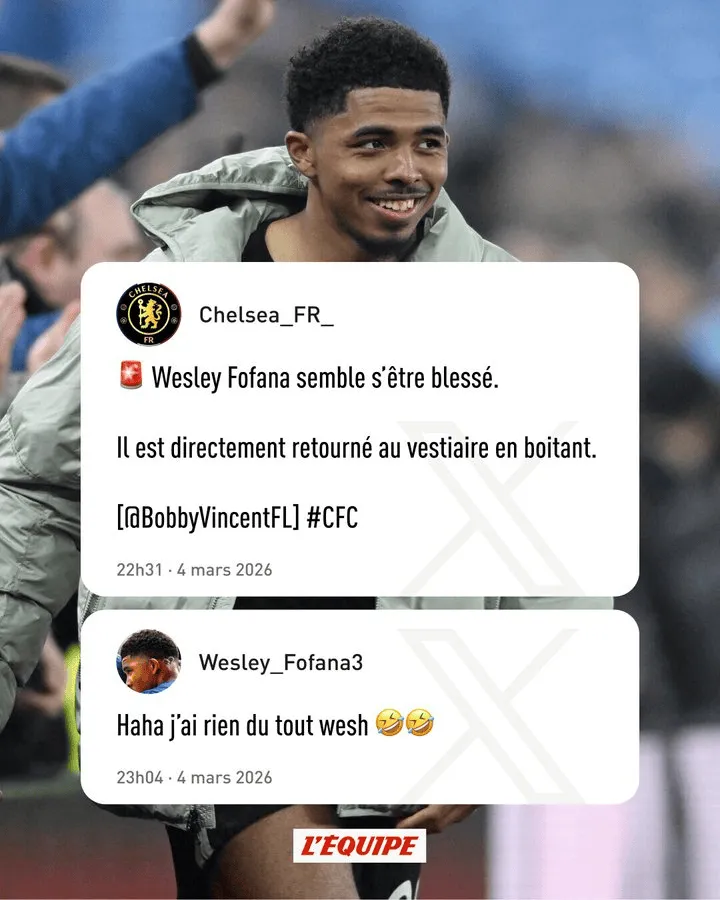 此役福法纳为切尔西首发出战,但在下半场被换下,因此有媒体称这位切尔西后卫看起来受伤了,走进球员通道时一瘸一拐,但福法纳社媒辟谣,他表示:“嗯?我没事。